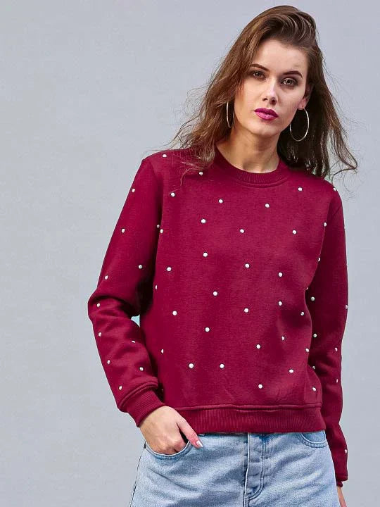 Maroon Pearls Beaded Sweatshirt For Women