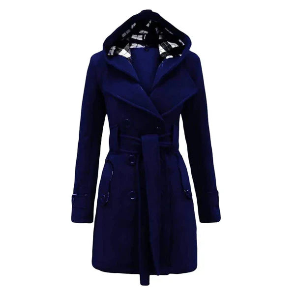 Navy Blue Women's Lace Trim Trench Coat Style Jacket